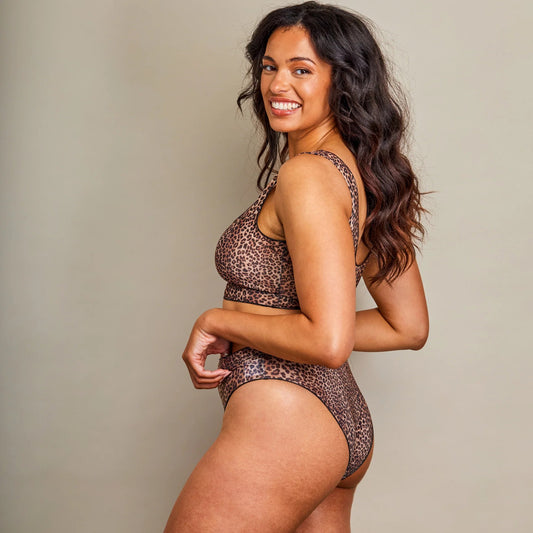 Įdegį praleidžiantis sportinio stiliaus bikini rinkinys – Mini Feline ☀️👙